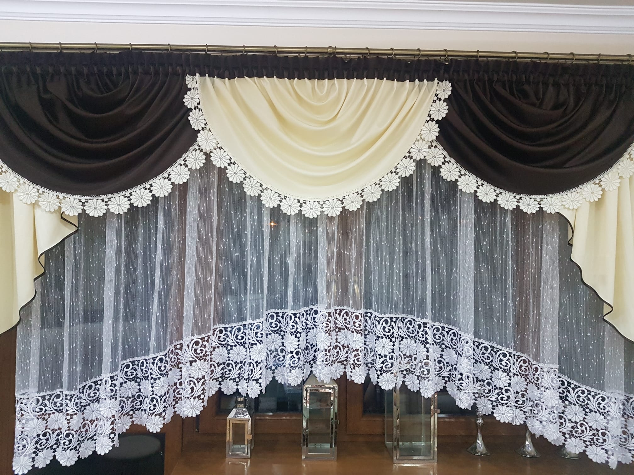 Prezentujemy stylowy kremowo-brązowy lambrekin, który wprowadzi elegancję i wyrafinowanie do Twojego wnętrza. Wykonany z wysokiej jakości tkanin w odcieniach kremu i głębokiego brązu, lambrekin ten charakteryzuje się pięknym gipiurowym wykończeniem, które dodaje mu klasycznego uroku. Idealny do salonu, sypialni lub jadalni, stanie się centralnym punktem dekoracyjnym w Twoim domu. Produkt jest nowy i gotowy do zawieszenia.